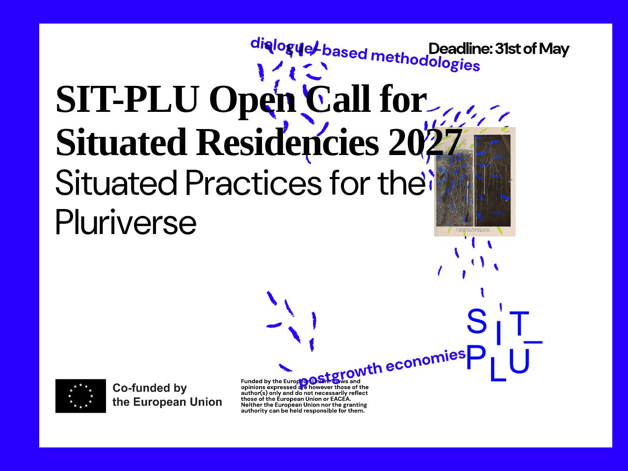 SIT-PLU ist ein Kooperationsprojekt im Rahmen von Creative Europe, gefördert von der Europäischen Union. Projektpartner sind: LUCA School of Arts (BE), Floating University Berlin (DE), ZEMOS98 (ES), Idensitat (ES), Lungomare (IT), Baltan Laboratories (NL), EINA (ES), Universitat Politècnica de València (ES).