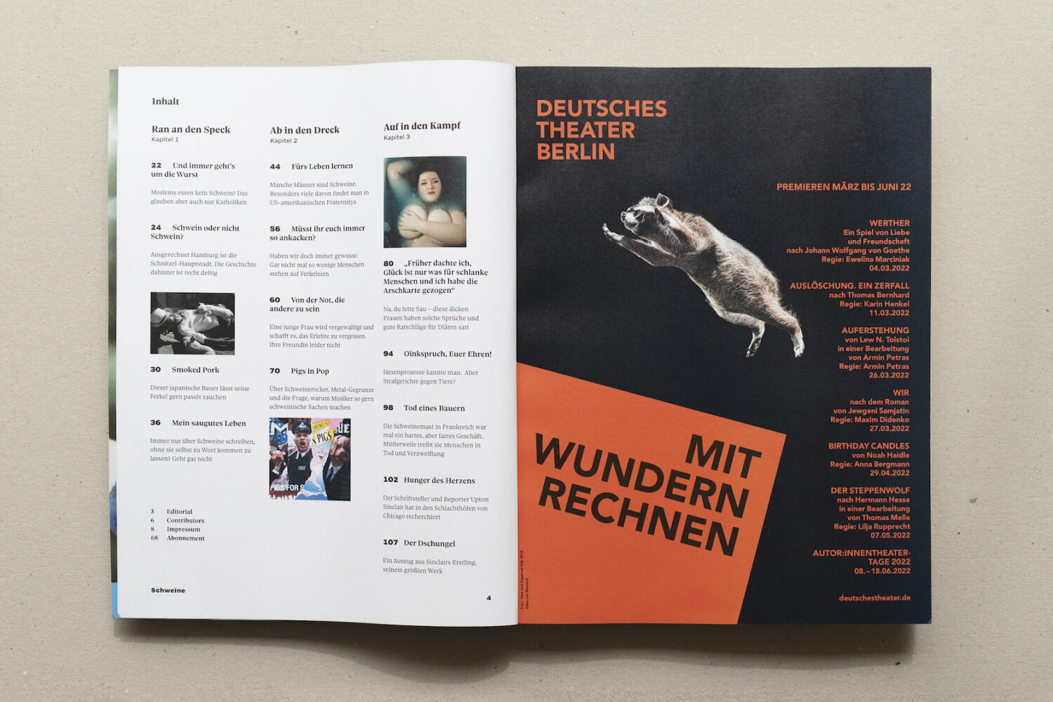 Art Direktion und grafische Gestaltung des Magazins zum Thema "Schweine"