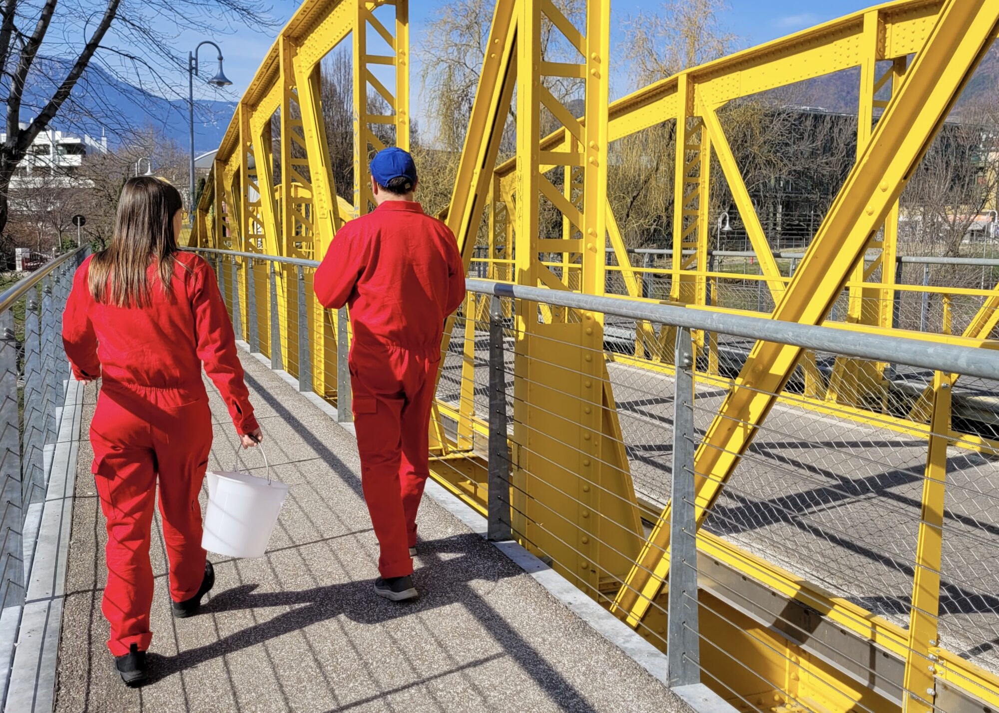 get wet! ist das für die erste SIT-PLU-Residenz ausgewählte Projekt, das im Januar 2026 beginnen wird. Vorgeschlagen vom Künstlerkollektiv WOOPS (Work On Outrageous Public Spaces), bestehend aus Hannes Gröblacher, Lilli Lička und Mira Samonig, setzt sich das Projekt mit den Flusslandschaften Bozens durch die Materialität des Wassers und eine Reihe von öffentlichen Aktionen auseinander, die darauf abzielen, verschiedene Wege der Annäherung, Interpretation und Besiedlung der Flusslandschaft als Mikrokosmos des Planeten zu erkunden.