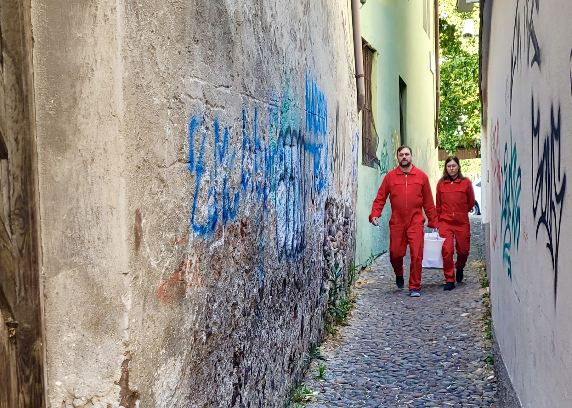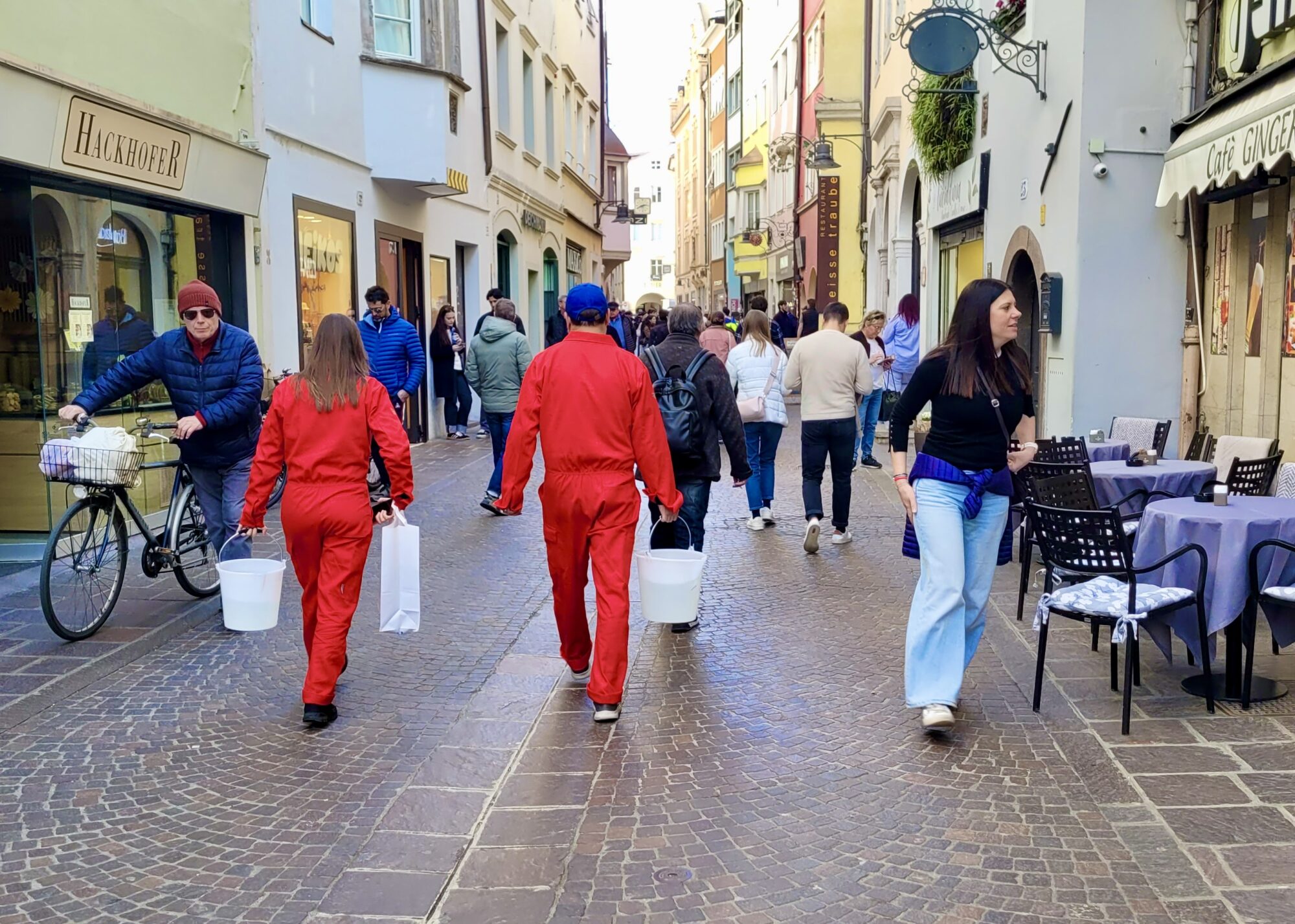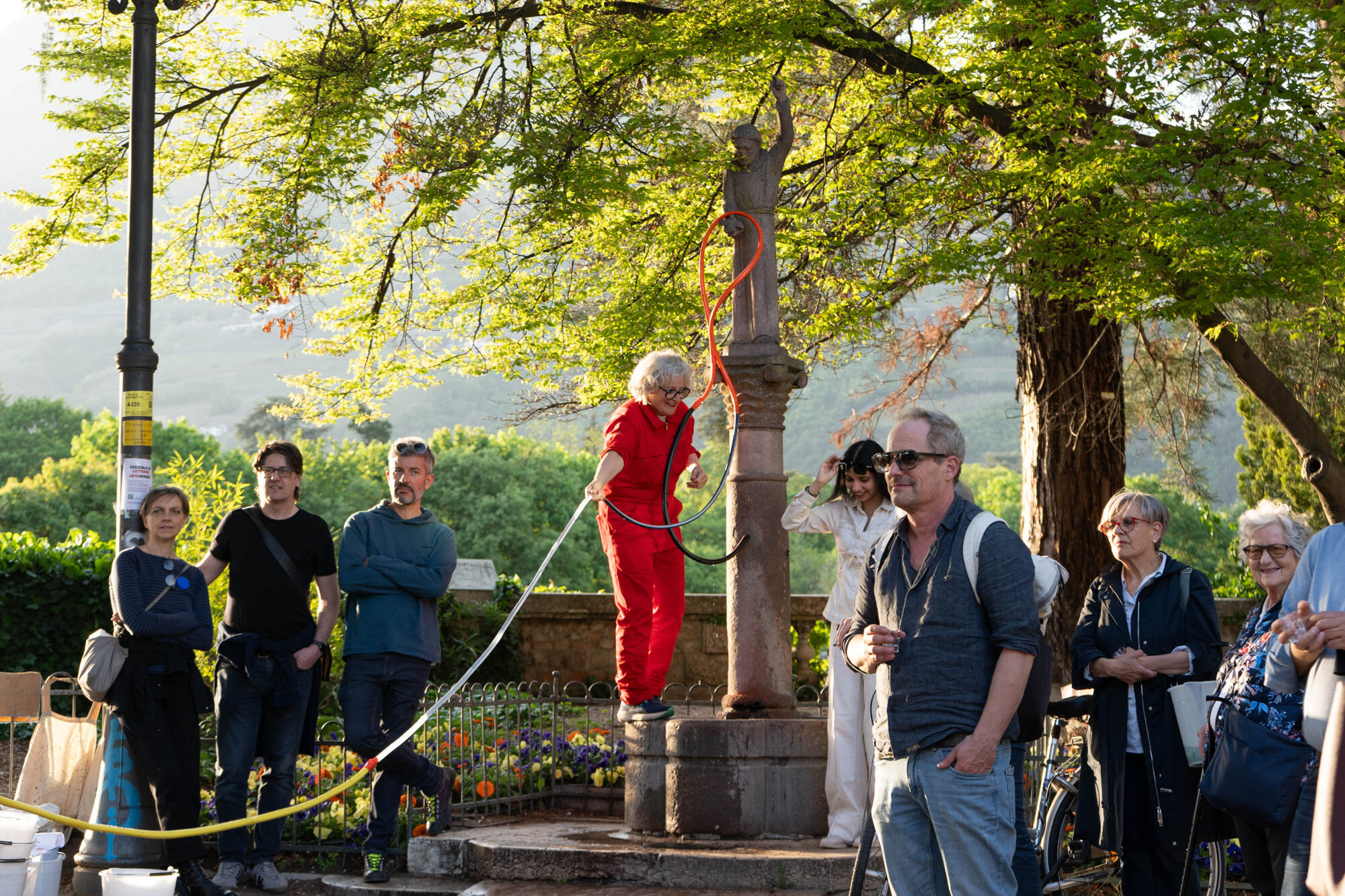 get wet! manifestiert sich in partizipativen, kollaborativen und performativen Aktivitäten im öffentlichen Raum Bozens. Jede Aktion basiert auf der Erkundung einer spezifischen Eigenschaft des Wassers und verbindet diese mit einer bestimmten Akteursgruppe – die Wassereigenschaft wird so zur fluiden Brücke des Austauschs.