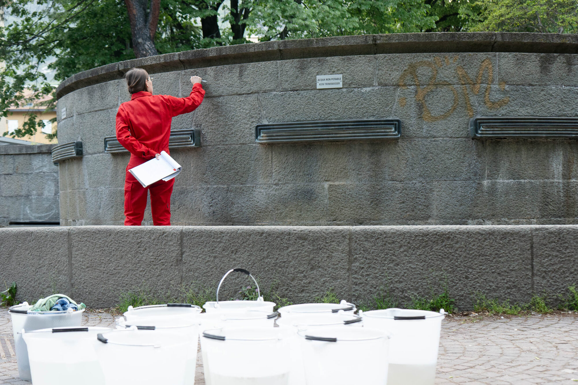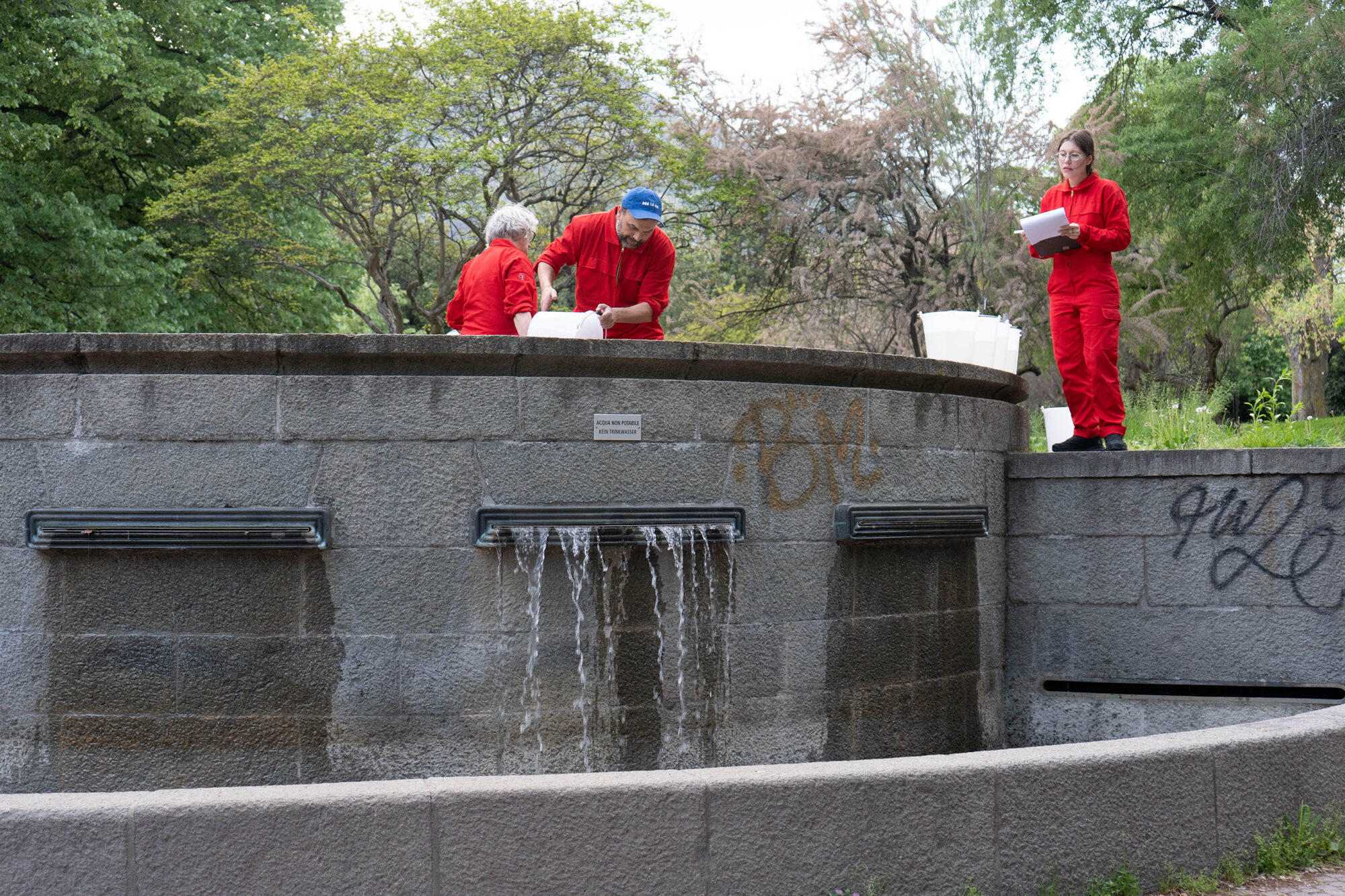 Eine gemeinsame Wartungstour entlang öffentlicher Brunnen Bozens mit frischen Aufgaben, kniffligem Problemlösen und wässrigen Interventionen. Oft übersehen und als selbstverständlich wahrgenommen, werden diese Brunnen hier zu Ausgangspunkten neuer Perspektiven: Durch kleine, unerwartete Handlungen eröffnen sich Momente der Irritation und Neuaneignung – und ein direkter Kontakt mit dem öffentlichen Wasser der Stadt