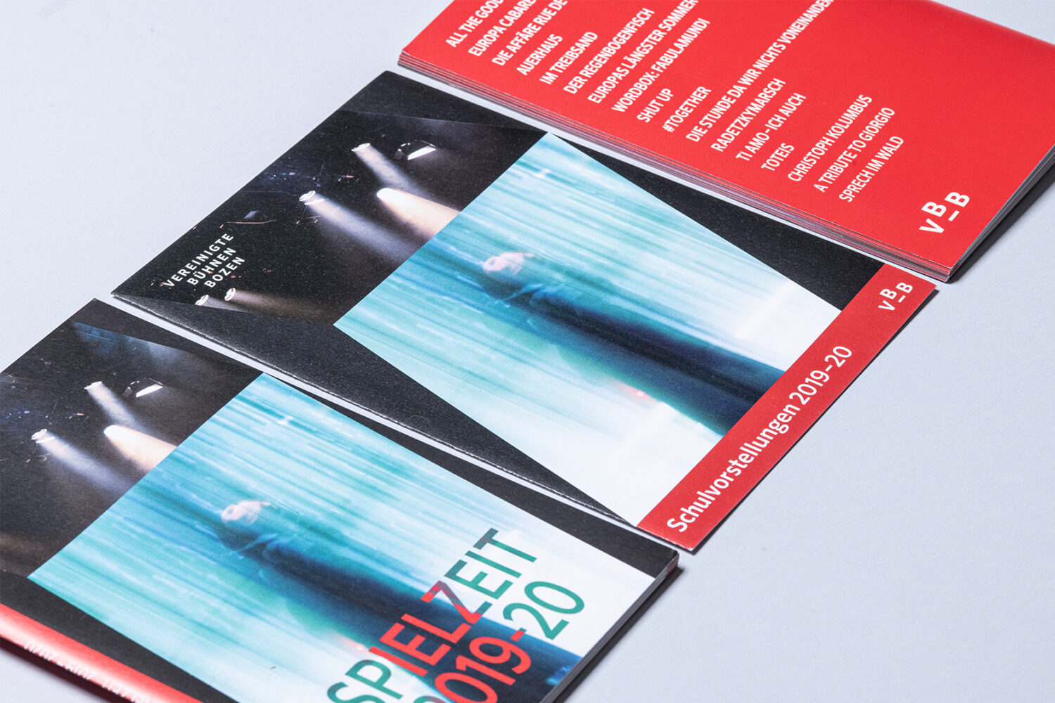 Seit 2012 entwickelt Lupo Burtscher jedes Jahr die Spielzeitkampagne der Vereinigten Bühnen Bozen (VBB). In jeder Theatersaison arbeitet Lupo Burtscher für die Bildebene mit einer Künstler / einem Künstler zusammen und es verändert sich die dominante Farbe/n der Spielzeit. Die Stücktitel werden in typografischen Experimenten jeweils in unterschiedlichen Formen vermittelt.