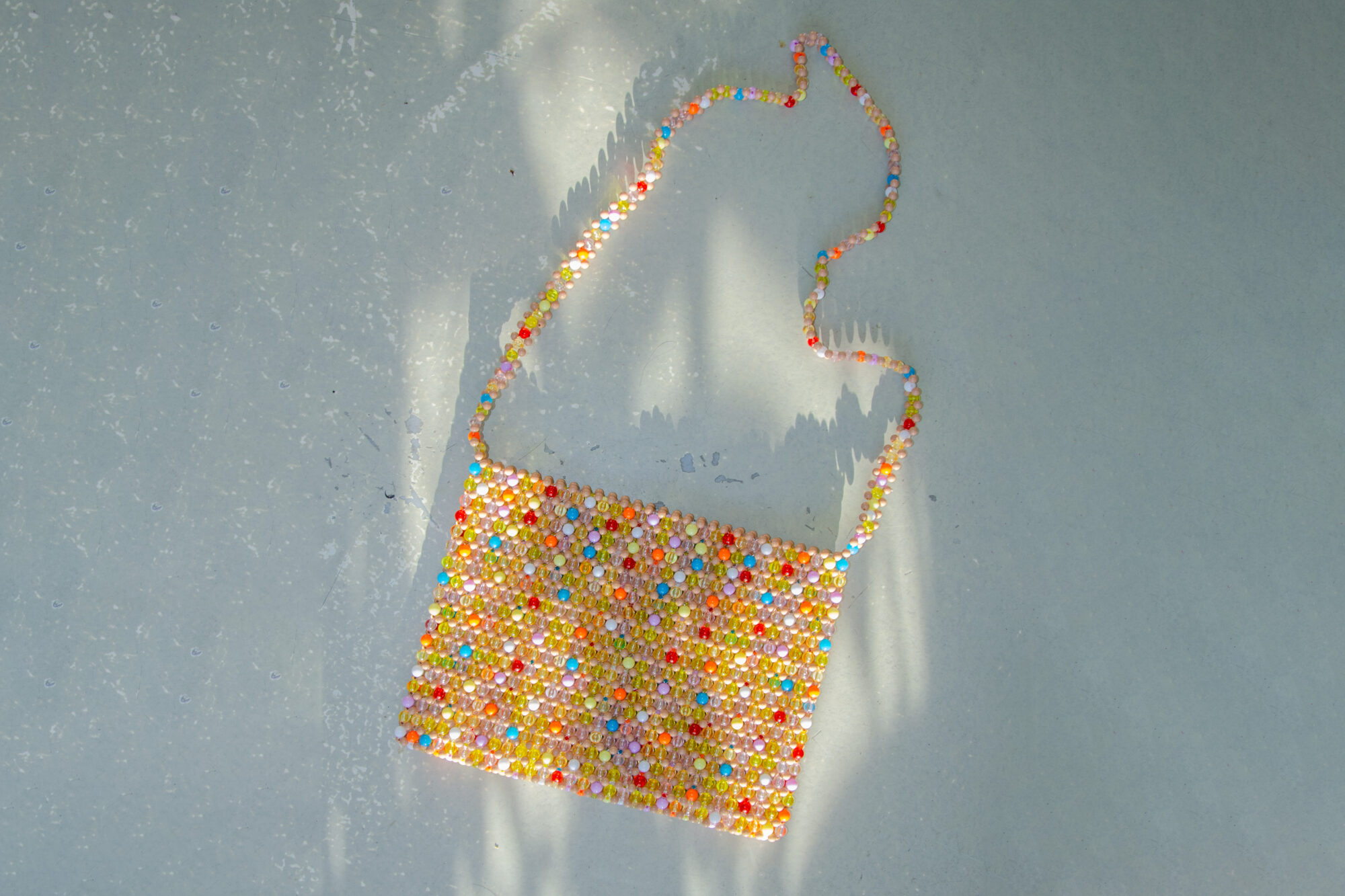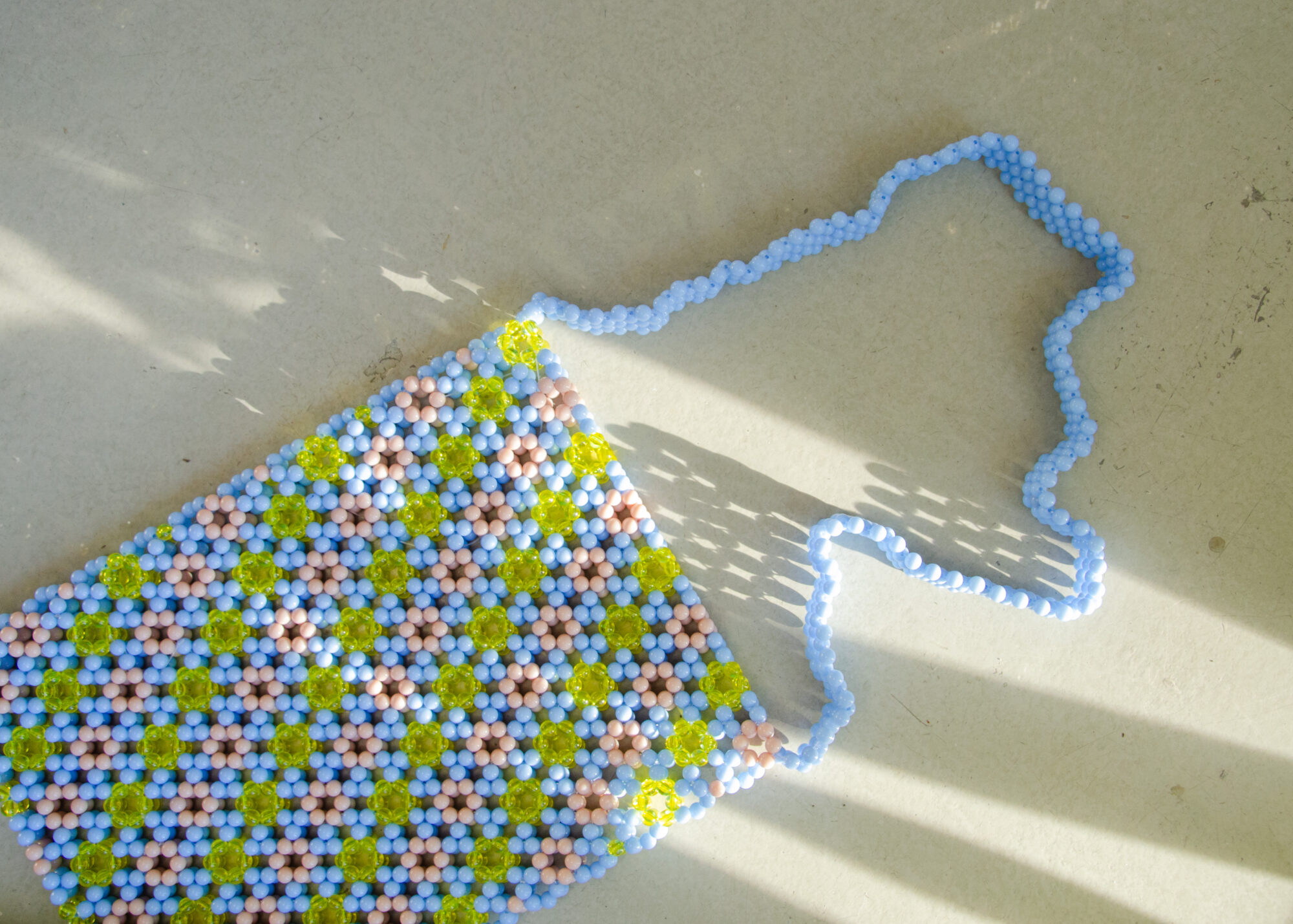 Edition N°3, entitled BEADS, is an encounter of the passions of Kira Kessler, designer and artist specialising in creating inventive and avant-garde textiles, and Hazra Begum, craftswoman originally from Bangladesh with a passion for embroidering, sewing and threading beads. The patterns of the bags are designed and composed by Kira and were professionally realised by Hazra.