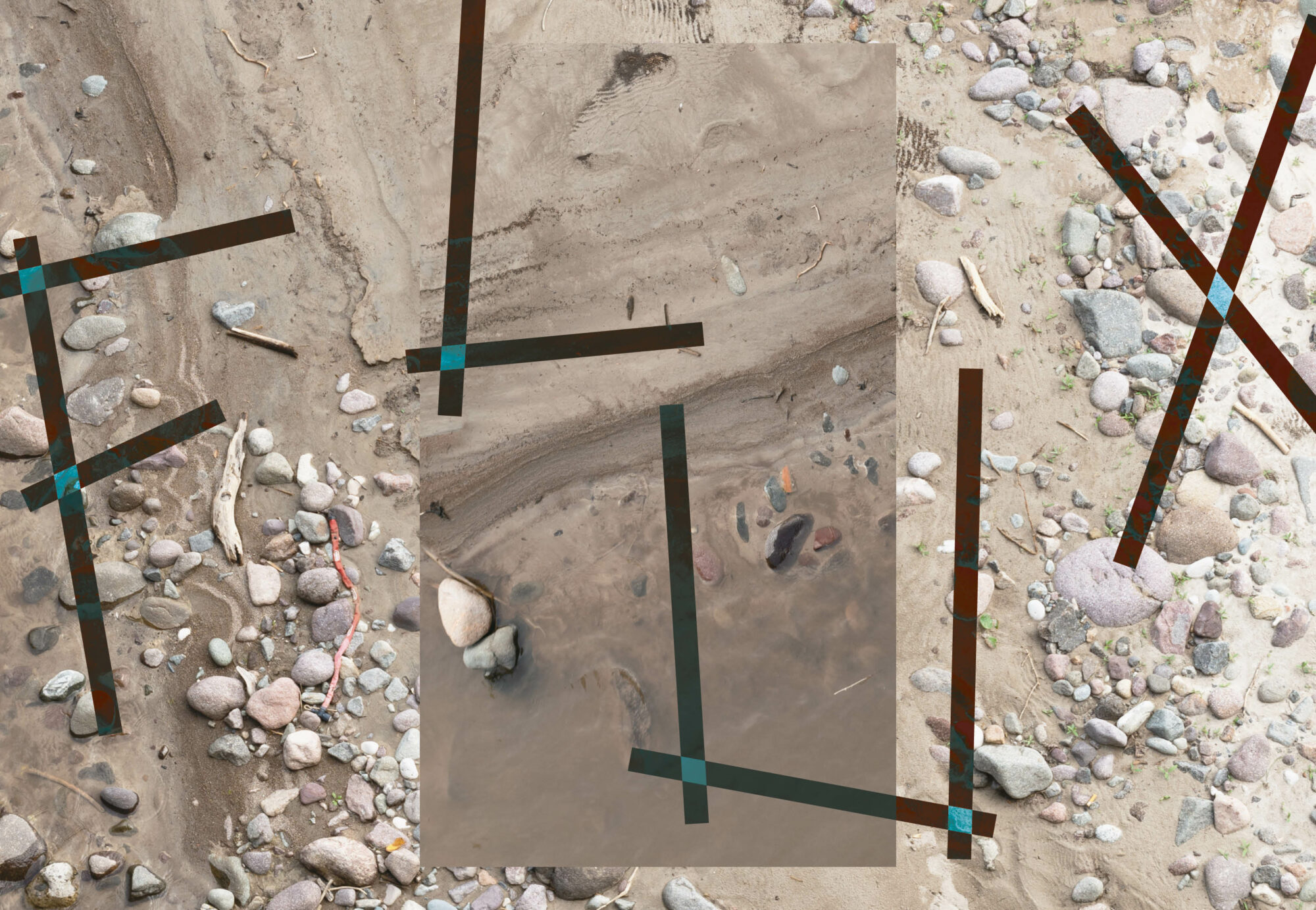 Rivers are vital, changing and dynamic networks that reflect our patterns of society and economy. Although rivers have shaped landscapes for millennia and provided the basis for human and other than human survival, industrialisation in the western world has set in motion a counter-dynamic in which people shape and domesticate rivers by means of technology. (…) In my photographs and videos I try to identify patterns that indicate changes and inter-connections between human activity and rivers: traces in the landscape, water movements, variation in banks and flows. Sketches of hydraulic engineering projects, maps and elevation models encounter stones and gravel that imitate river patterns. The explanatory and evocative voices of scientists and engineers repeat and mingle with the images, creating perspectives of and approaches to river improvement. However, my art neither offers an idyll nor a simple solution to complex problems.