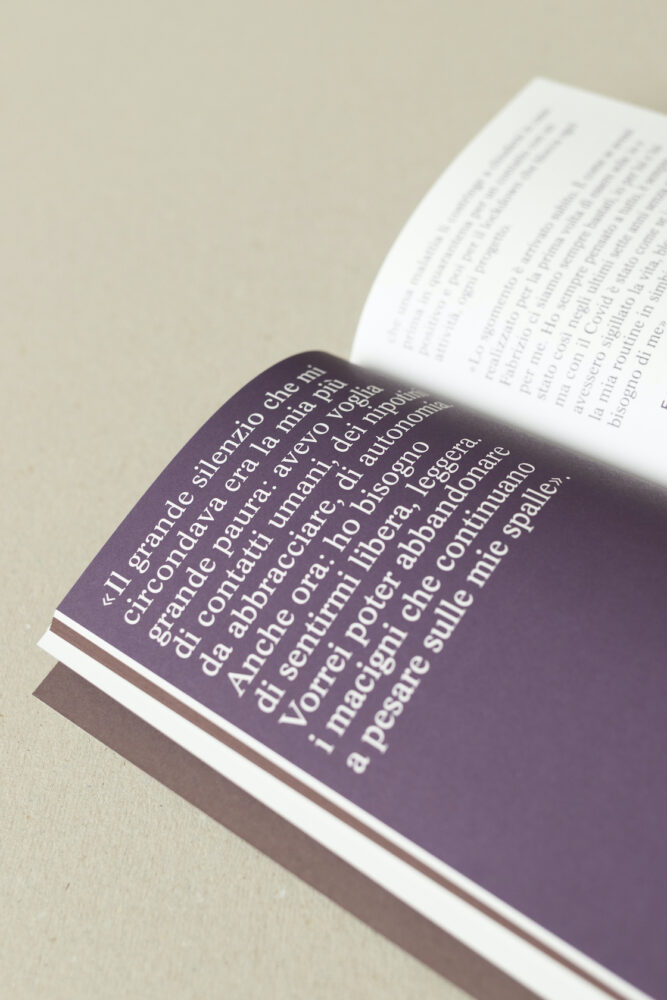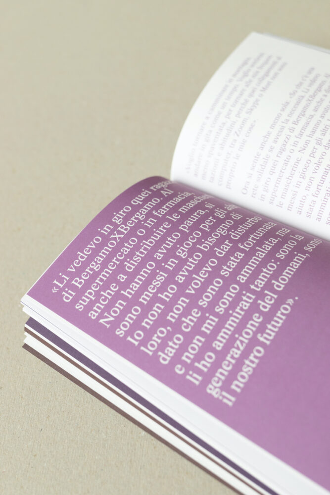 The book «La memoria e il domani» (Memory and tomorrow), written by the journalist Fabiana Tinaglia, collects stories of women and men in Bergamo who reflect on their future after the Covid19 pandemic. Tomorrow is told by fifteen voices inspired by six narrations in Bergamo’s “Centres for all ages”. The storytellers have discovered in their memories the drive to start again with courage. Fifteen stories, which in the book correspond to fifteen colours of different shades, tell a different future in the form of a diary, starting from the memories of the inhabitants of the region of Italy most affected by the pandemic.