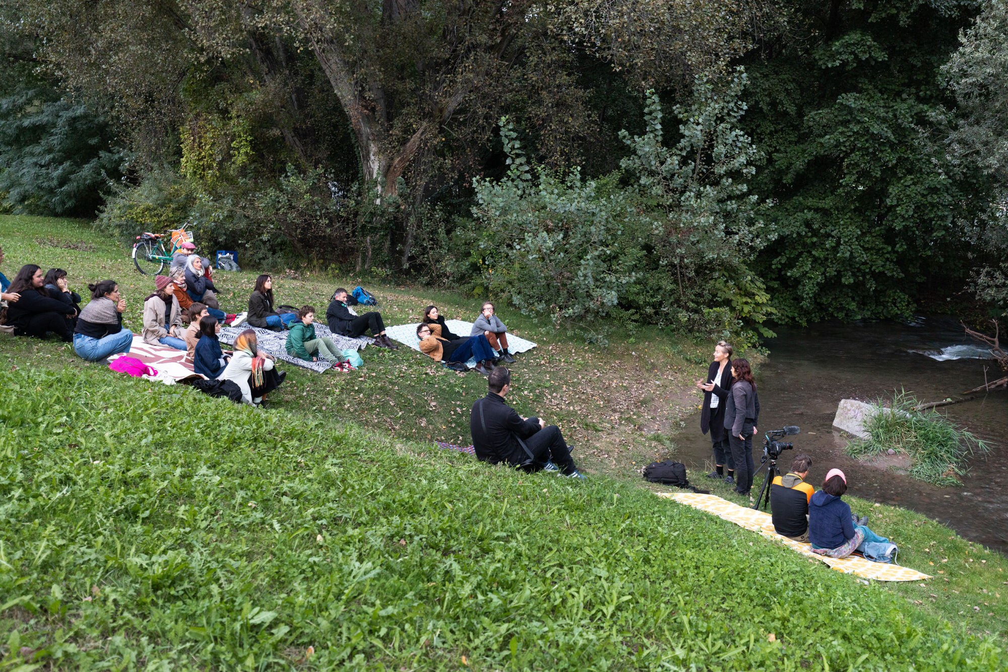 La performance si svolge sulle rive del fiume alla confluenza tra i fiumi Talvera e Isarco.