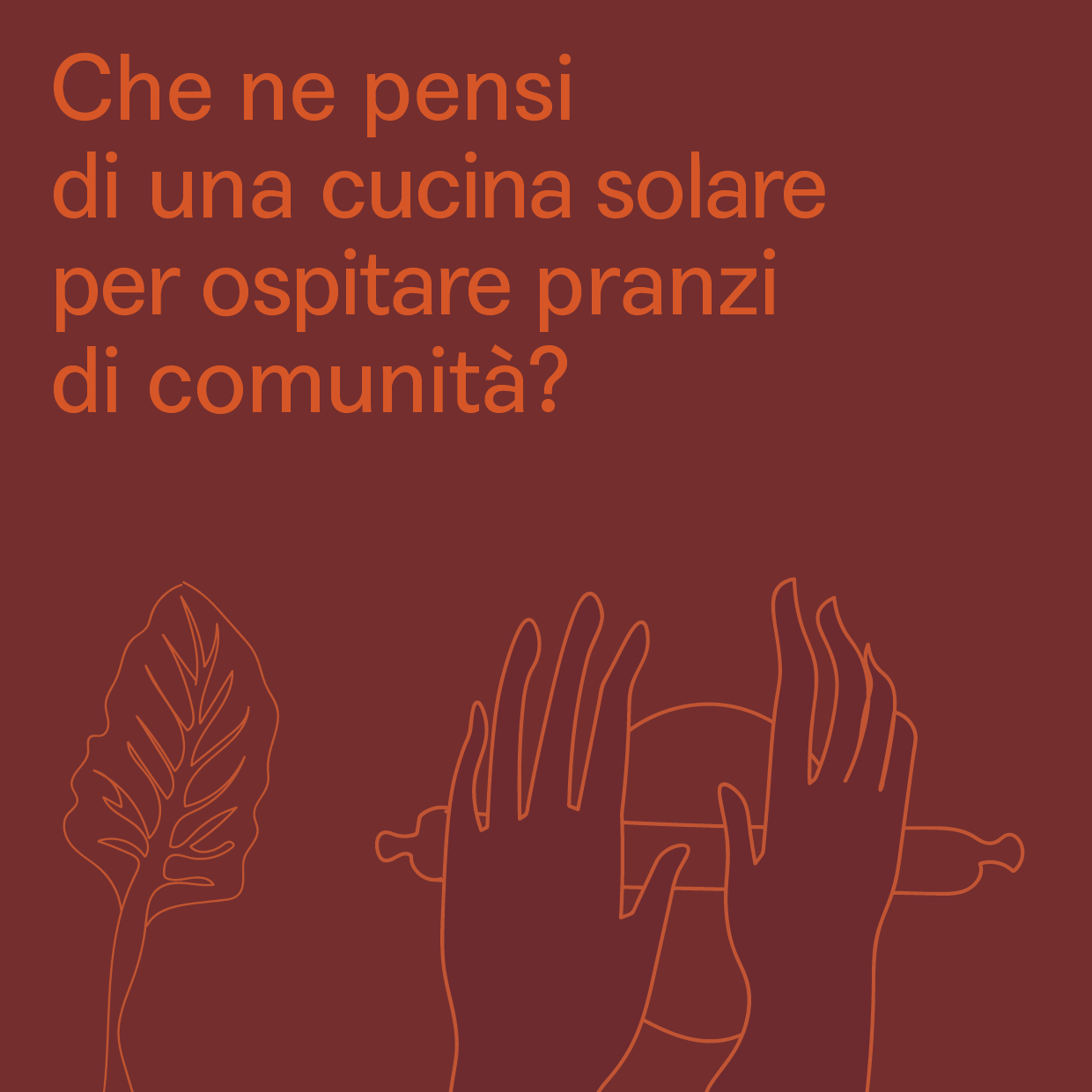 Per comprendere meglio il contesto e i dettagli tecnici della cucina solare, lɜ candidatɜ sono invitatɜ a consultare l’Allegato A (storia e potenziali utilizzi di Fiumicina) e l’Allegato B (manuale). Inviata la candidatura, lɜ candidatɜ riceverà un’email di avvenuta ricezione.
