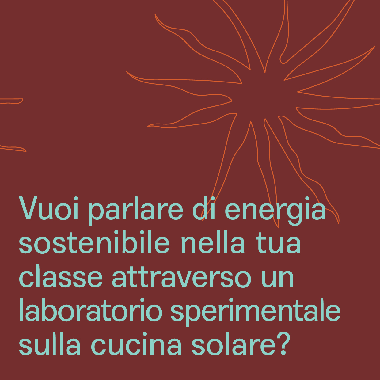 - Requisiti spaziali: per tutta la durata del progetto, la proposta deve prevedere la presenza di uno spazio che possa ospitare Fiumicina, garantendo le condizioni di luce solare necessarie per sperimentare l’uso della cucina solare.