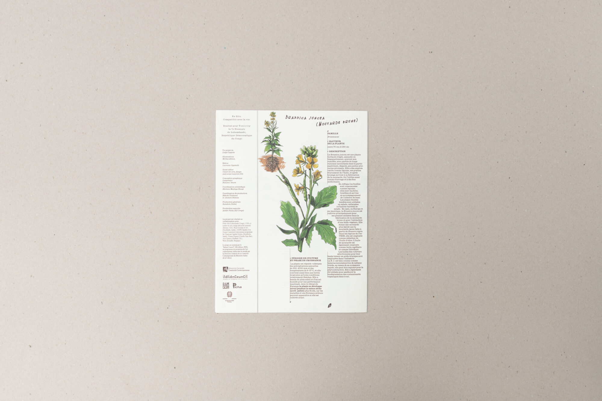 All’interno della 7° Biennale di Lubumbashi nella Repubblica Democratica del Congo, l’artista Luigi Coppola ha presentato Ex-Situ un progetto sul ripensare il rapporto con la terra, sia dal punto di vista degli uomini, che delle piante. Lungomare ha progettato il design di una rivista free-press di dodici pagine, distribuita durante la Biennale, nella quale vengono illustrate e raccontate 12 piante e la loro relazione e compatibilità con la vita dell’uomo.