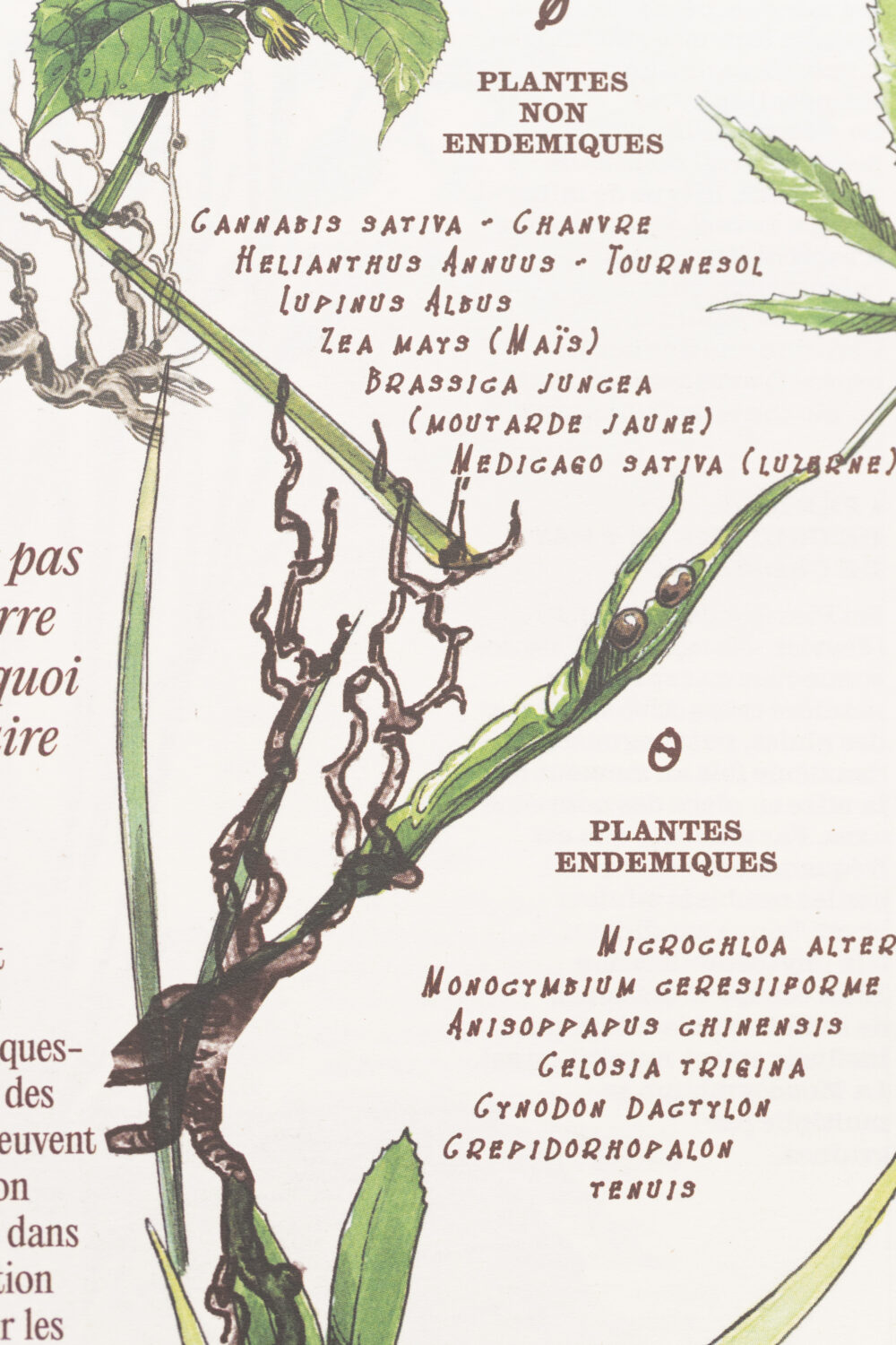 Queste 12 piante, suddivise tra endemiche e non endemiche, rappresentano la continuità della storia della vita attraverso lo spostamento, l’adattamento e l’addomesticamento. Alla base c’è l’idea di riscrivere una storia dell’uomo a partire dalle relazioni simbiotiche costruite tra le piante e dai rapporti di dominazione e castrazione ad opera della mano delle comunità umane.
