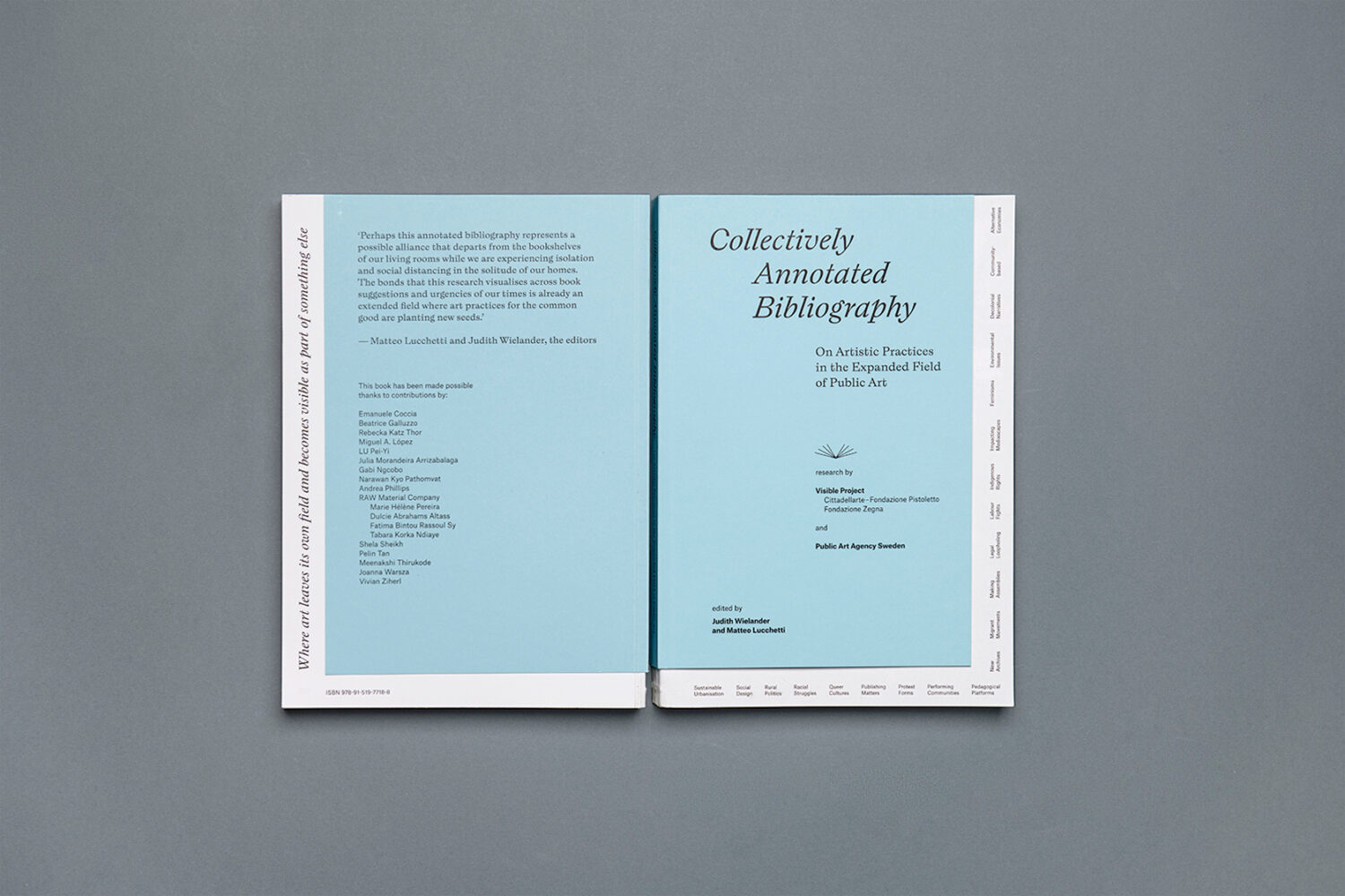 Collectively Annotated Bibliography: On Artistic Practices in the Expanded Field of Public Art è una ricerca sul rapporto tra teoria e pratiche artistiche socialmente impegnate, curata da Judith Wielander e Matteo Lucchetti.