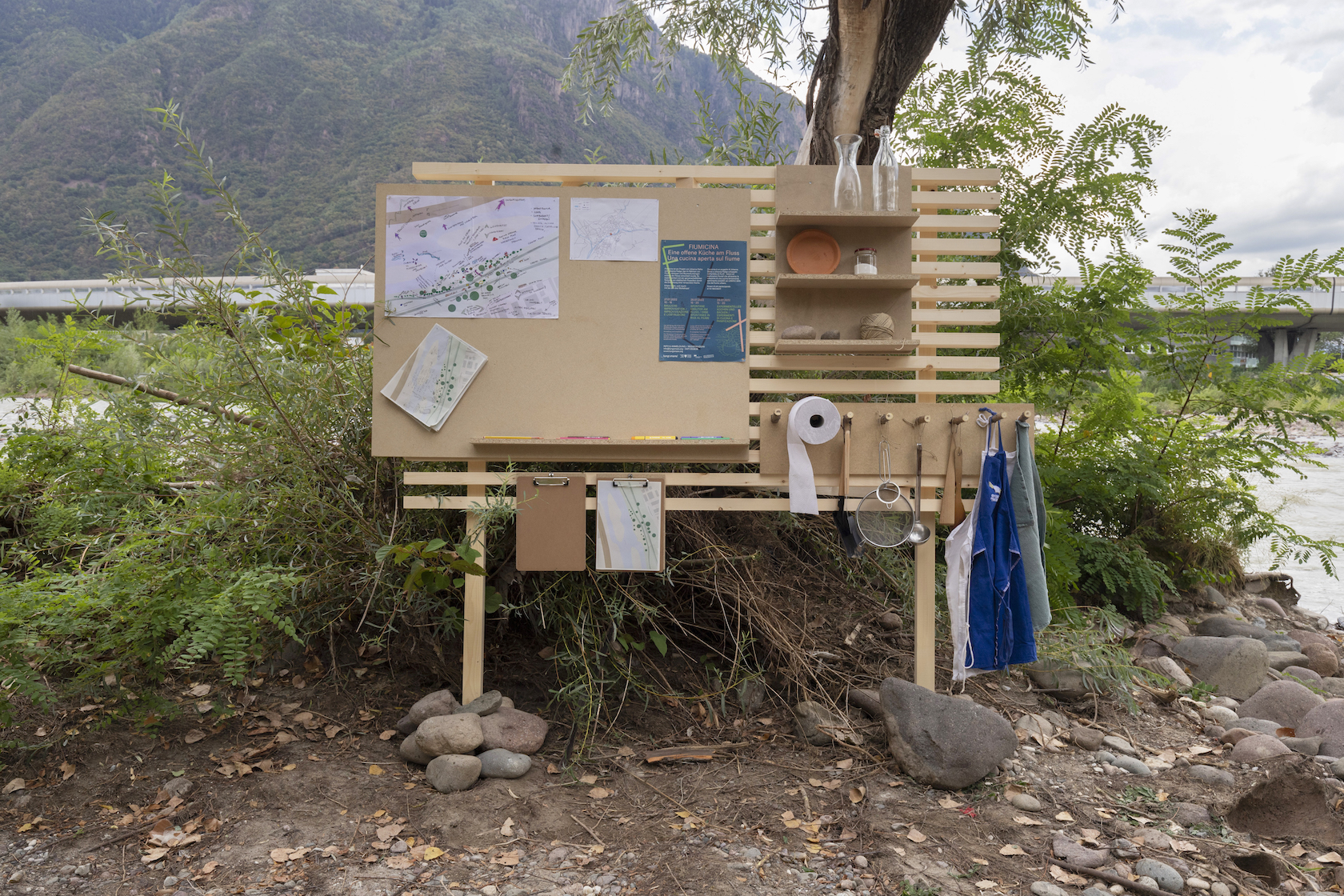 La cucina all’aperto di Fiumicina è un’infrastruttura fluviale-urbana estesa, specifica per il luogo selezionato lungo il Talvera, quindi resiliente, adattabile e integrabile. Si costruirà insieme una stazione sperimentale di cottura solare, dove è possibile riscaldare e cucinare cibi portati o raccolti lungo la riva. L’installazione scultorea offre ai partecipanti un primo contatto con l’energia solare.