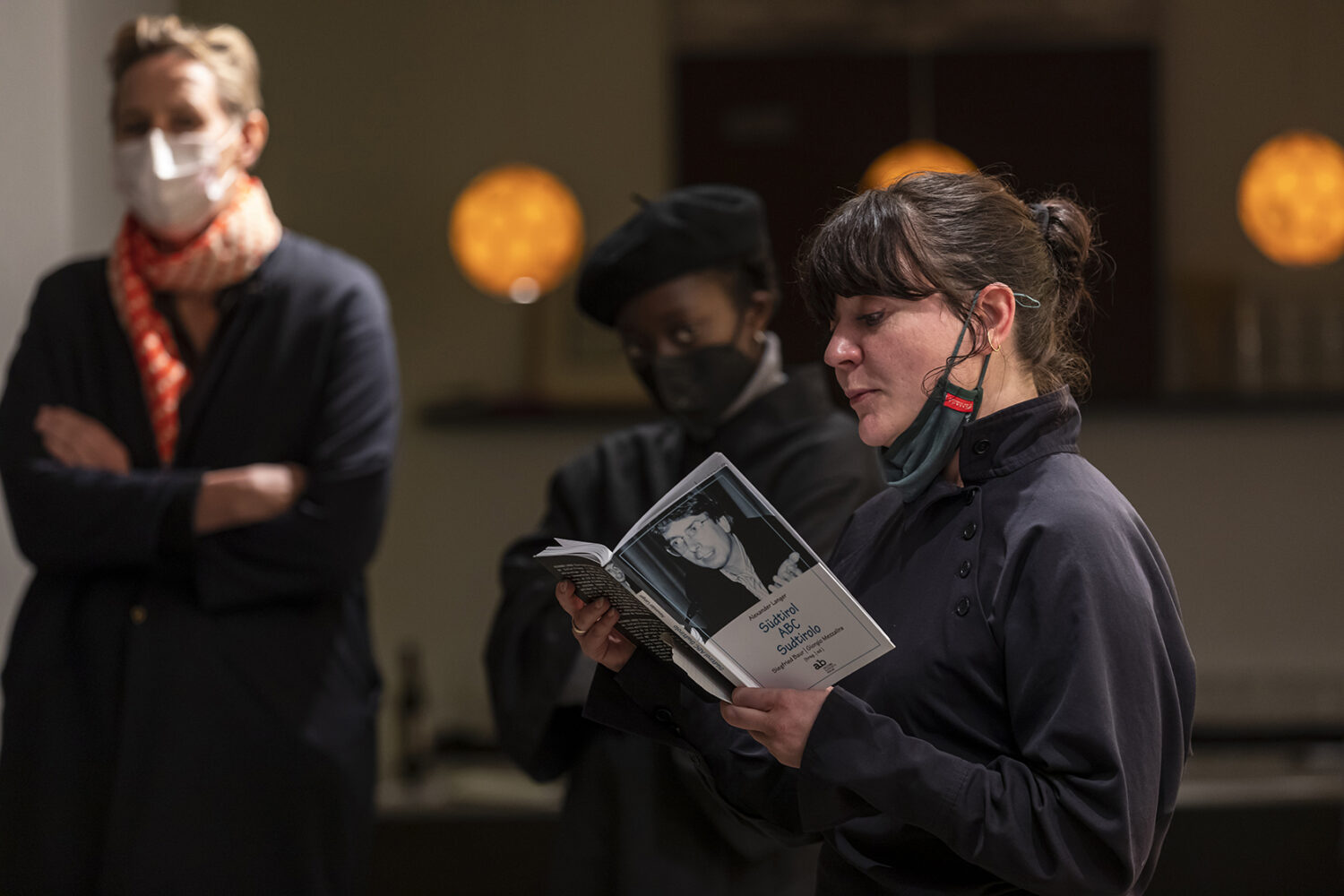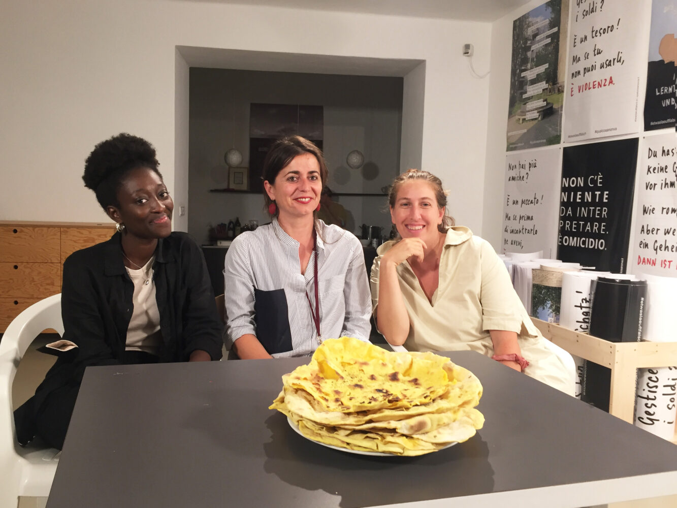 Binta Diaw translates the collective acts of narrating and listening, sewing, cooking and writing into a multimedia artistic landscape that attempts to construct new frames of reference and to collectively define their parameters. The interactions were based on words and phrases taken from Südtirol ABC Sudtirolo, a text by politician and activist Alexander Langer. The texts and audio pieces, as well as the video installation in the exhibition give a multivocal account of people who want to overcome isolation and division and instead imagine the communal life-worlds of the future.