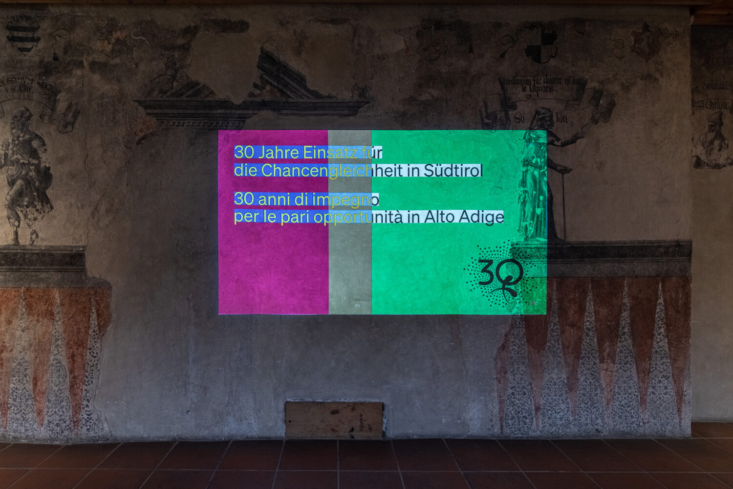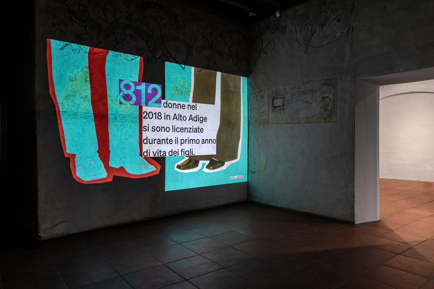 The animation series is created using materials from the Bolzano Province archives of their Advisory Board for Equal Opportunities. Fragments of posters, campaigns, slogans, articles, data and figures collected and passed on by the Commission over the years form the basis for textual-graphic narratives on the five main themes: Reconciling Family and Work; Equal Pay for Equal Work – Closing the Pay Gap; Women in Leadership Positions in Business, Society and Politics; The Image of Women in Society; and Combating Violence Against Women. Each animation visually interprets each theme in the form of a narrative collage. This is achieved through the expressive use of typography, the interplay of colour and the superimposition of image clips and fragments of the original material.