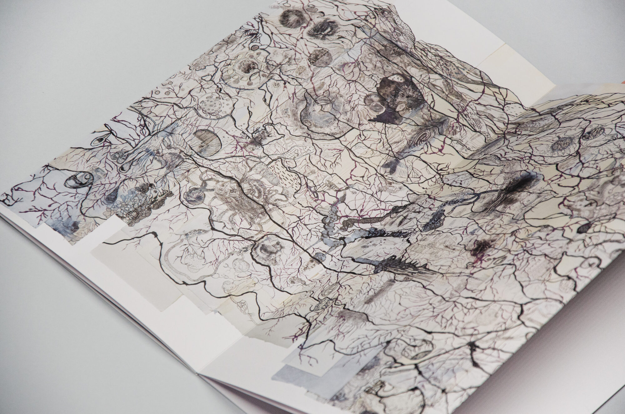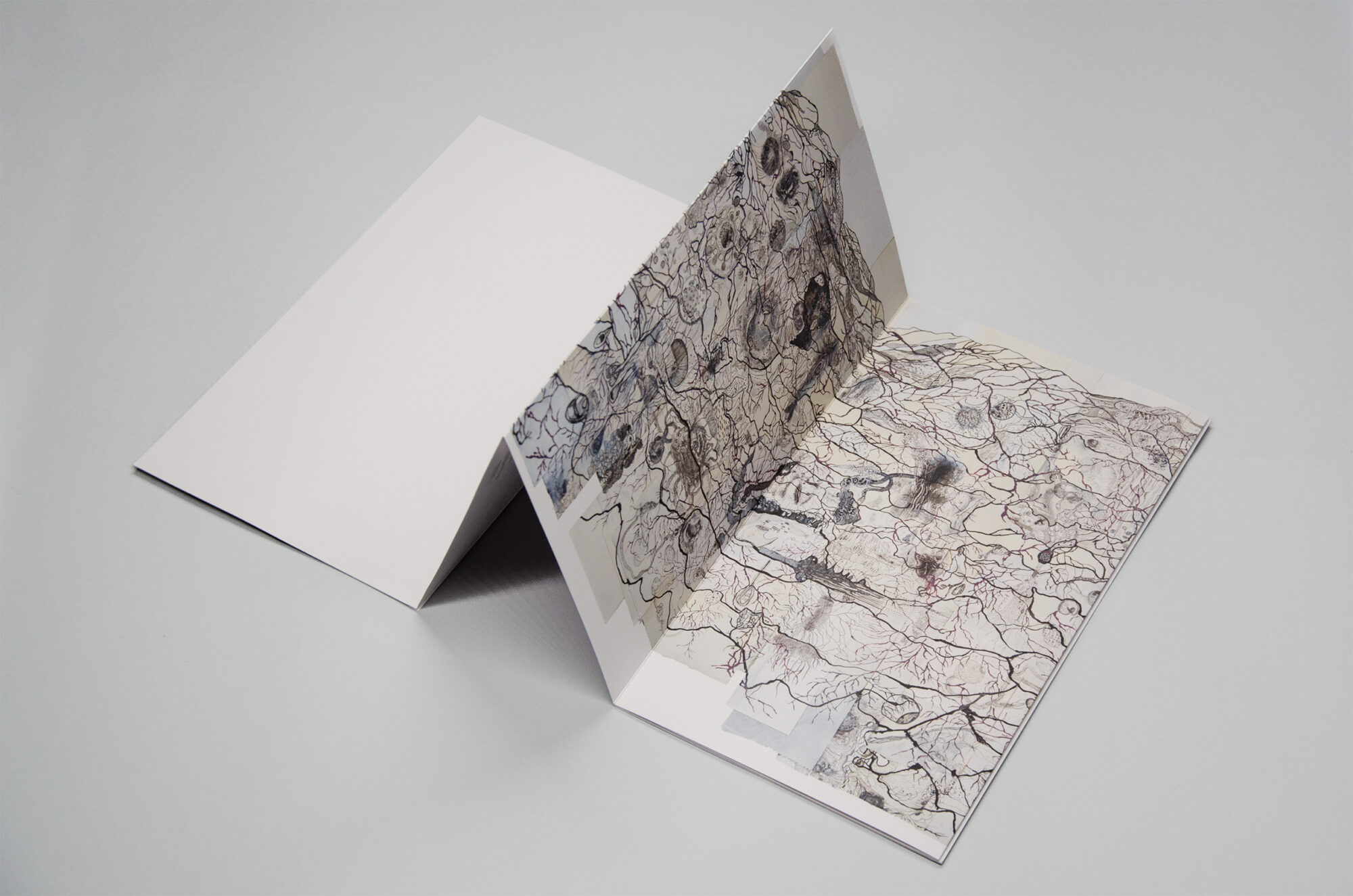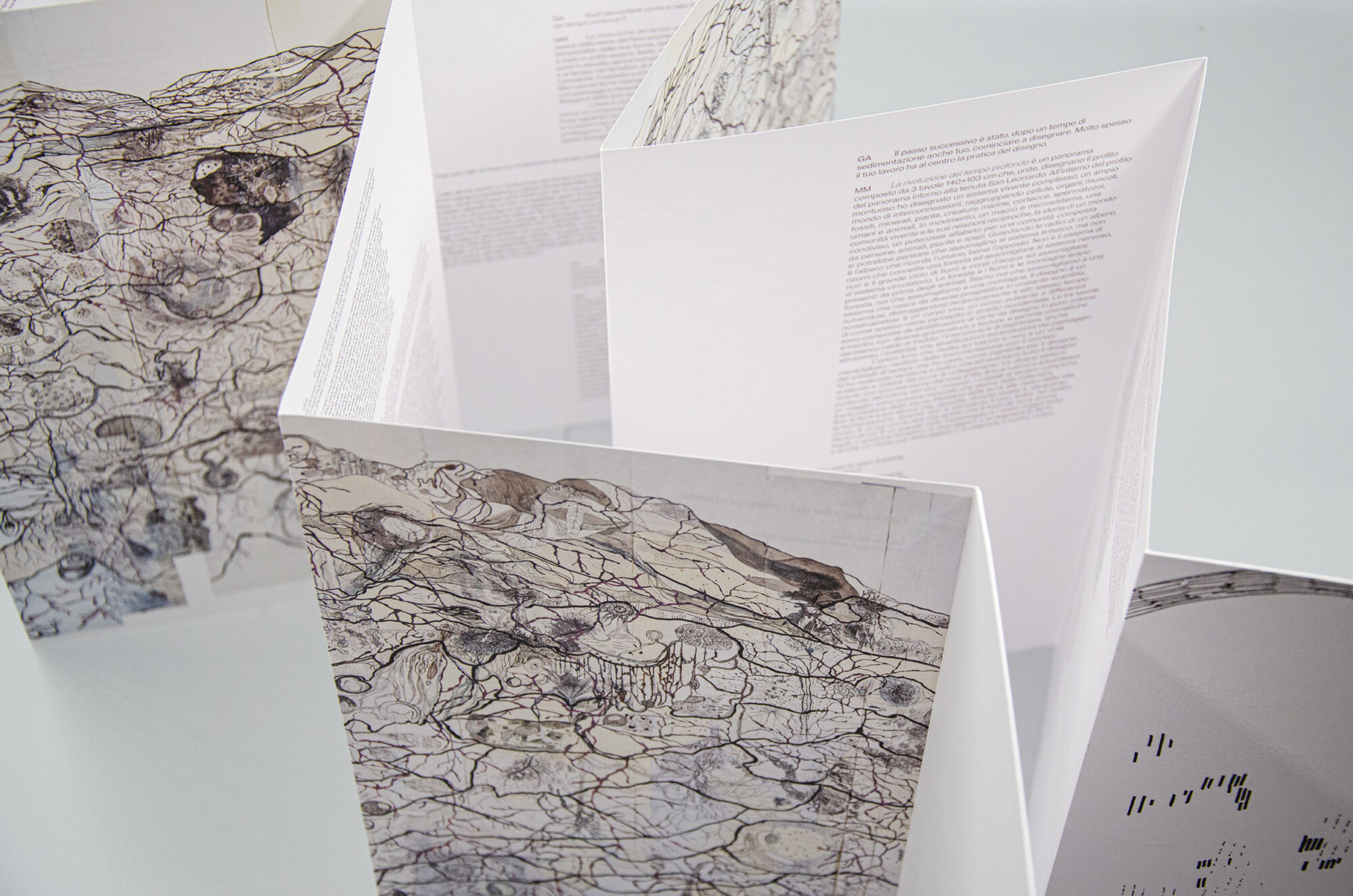 The leporello-book, which becomes a sculptural object when leafed through, alternates a narrative composed of marks, interweavings and engravings with the words of the interview to the artist conducted by Giovanna Amadasi.